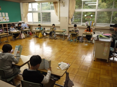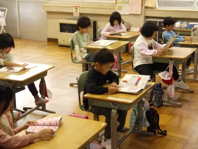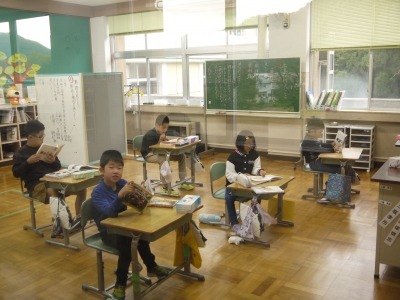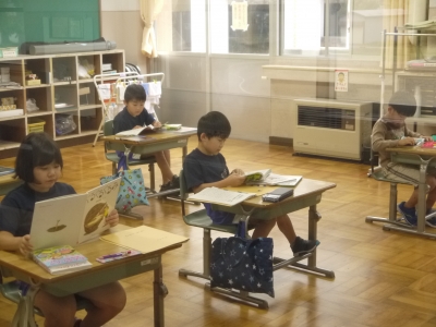 朝日小学校では週2回、火曜日と木曜日の朝の時間に読書活動を行っています。オルゴールの放送とともに、各学級、子どもたちは静かに読書に親しみました。