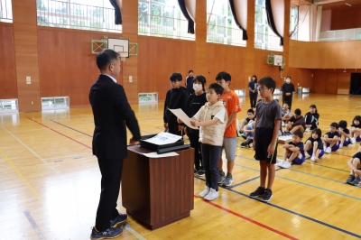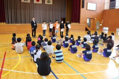 夏休みに取り組んだ絵画コンクールや歯科衛生の標語コンクール、陸上大会など朝日小学校の子どもたちのがんばりを賞賛できるよい機会でした。