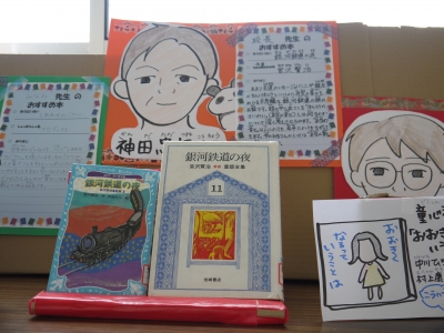 学校司書の先生が、読書週間の取り組みとして、先生方にお勧めの方を聞いて、子どもたちに紹介するコーナーを作ってくれました。