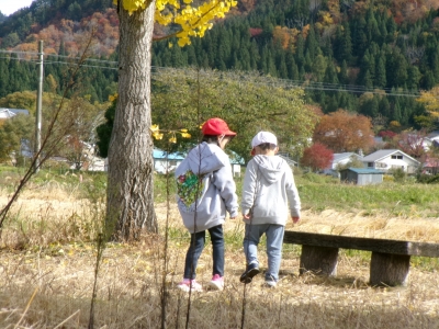 只見もすっかり秋が深まってきましたが、1年生が下福井の公園に秋を探しに出かけました。紅葉のきれいな中で、遊具で楽しく遊ぶこともできました。