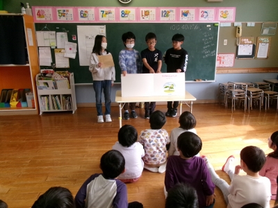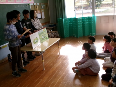 本校のメディア委員会が、近くのこども園に出かけて、園児に読み聞かせを行いました。「緊張する~」といっていた子どもたちでしたが、帰ってきた後は、「ちょっと間違ったけどうまくいった」「また行きたい」と目をキラキラさせて話してくれました。