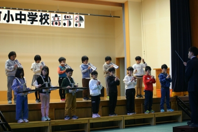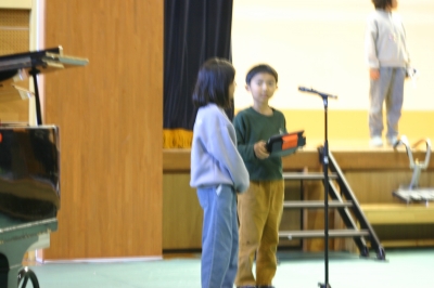 本日、町音楽祭が行われ、本校からは3・4年生が参加しました。合奏「ビリーブ」と合唱「夢をかなえてドラえもん」を発表しましたが、校内発表よりも上手に演奏することができました。
