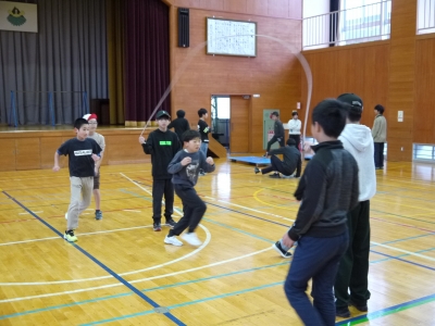 19日(水)に只見町でも雪が降りました。子どもたちは登校時からうれしそうで、早速、雪だるまを作っていました。そして、今朝のあさひっ子タイムでは、縄とび運動を全校生で行い、体力向上に励みました。