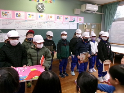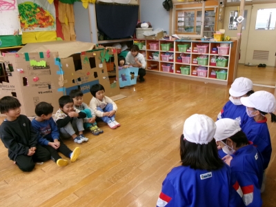19日(水)に3年生が近くのこども園に出かけ、読み聞かせをしてきました。読み聞かせする本のすすめポイントを紹介しながら、読み方を工夫しながら楽しく読み聞かせすることができました。