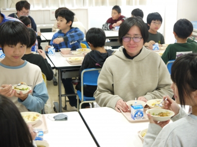 子どもたちと一緒に給食を食べる事によって、互いの顔が見える間柄になり、より一層、感謝の気持ちを持つことができました。