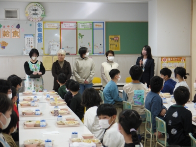 20日(木)は、学校給食に係る方々(生産者様、業者様、給食センター職員様)をお招きして、ふれあい給食を行いました。