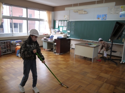 いつもの清掃に加え、くもの巣を取ったり、棚のほこりを取ったりして学校をよりきれいにしています。