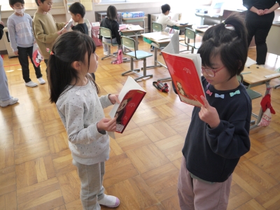 かけ算九九は「みんなで九九」という歌に合わせて発表され、上級生も一緒に歌いました。