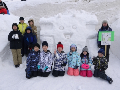 みんなで協力 雪像作り