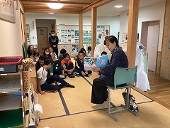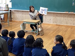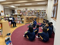 今日の朝は読み聞かせの時間です。「学校大好きアクバルくん」「まてないの」「あいことばはあらしのよるに」3名のボランティアの皆さんに読み聞かせていただきました。