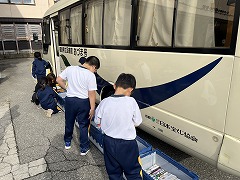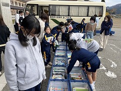 福島県立図書館から移動図書館「あづま号」に来校いただきました。借りたい本をたくさん抱えて、うれしそうな表情を見せる子どもたちでした。