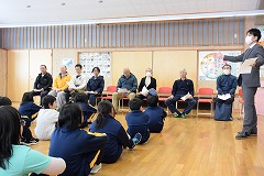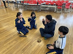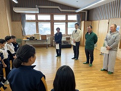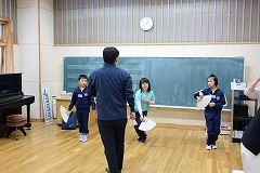 3・4年生の総合的な学習の時間の取組、ESD‐伝統芸能継承の学習が本格的にスタートしました。前回のオリエンテーションの後に配役を決め、今日はその担当ごとの練習です。保存会の皆様による指導をよく聞き、自分のものにしていってほしいです。