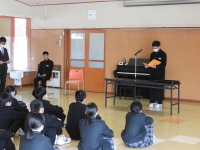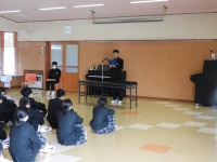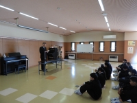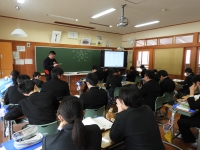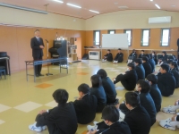 南会津警察署朝日駐在所より講師をお招きし、学校生活で注意すべき点について、映像資料を用いて分かりやすく講話をいただきました。