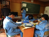 今回は大きな地震の2次被害として、3階特別教室棟の家庭科室から出火したことを想定しての実施でした。