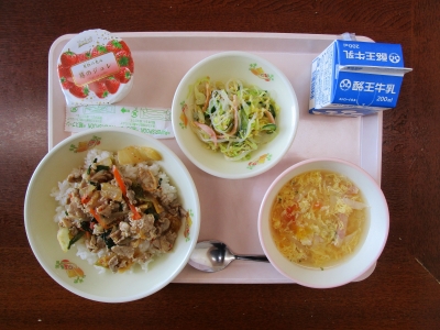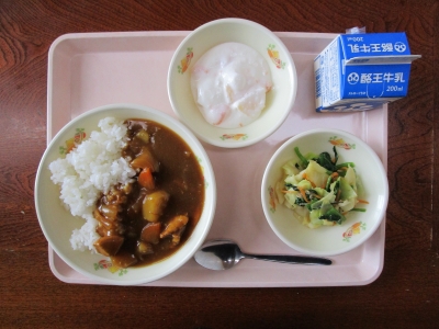 今日は人気メニューのカレーライスです。楽しく味わって食べてほしいです。