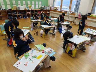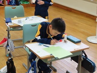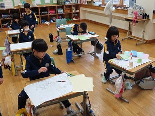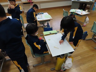2年生の図画工作科の様子です。オリジナルのすごろ作りに挑戦中です。子ども達一人一人、オリジナルのお話を想像しながら取り組んでいます。友だちに説明することで、イメージをふくらませています。