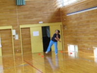 3年生はスポーツテストのハンドボール投げに取り組みました。女子も遠くを目指して頑張って投げていました。