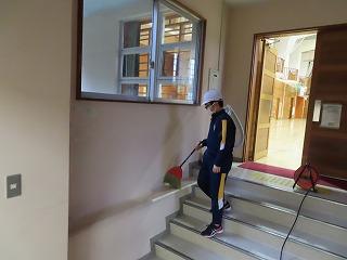 学期末清掃強化週間の取り組みとして、通常よりも時間を5分間延長して朝の清掃活動を行っています。2学期のしめくくりとして、毎日の清掃で十分に出来なかった箇所まで丁寧に清掃しています。