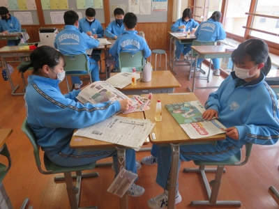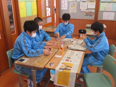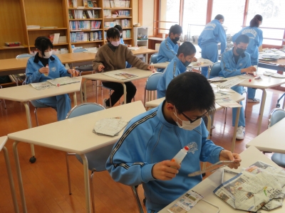 2年生:新聞紙によるレジ袋作成