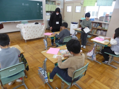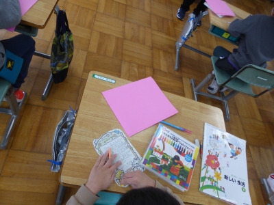 団子さしについて教えて下さった方々へ、お礼の手紙を書いています。感謝の言葉とともに、きれいに色ぬりもしています。