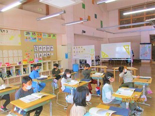 3・4年生の道徳は,『ウミガメの命』という資料を読みました。大人になれるウミガメはほんのわずかであるということを知り,感じたことを発表していました。