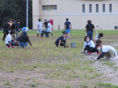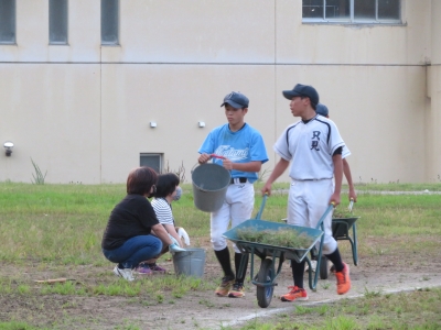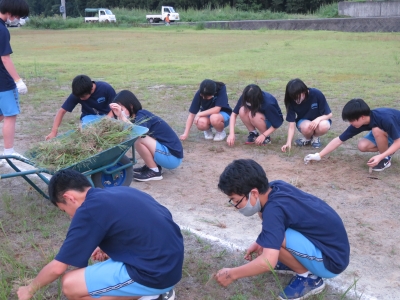 本日、17時30分より今年度2回目の除草作業が行われました。校庭や校舎周辺の雑草を機械や手作業で除去していただきました。お忙しい中ご協力いただいた保護者の皆様、本日はありがとうございました。