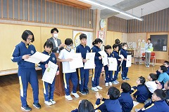 今日の朝の会は、郡造形展等の表彰と2年生の発表を行いました。生活科の授業で自分で考え、挑戦し、失敗も経験しながら取り組んだことを紹介してくれました。教育活動の様々なことがJRCと関わっていて、目指す子どもたちの姿に向かって成長していることを実感しています。