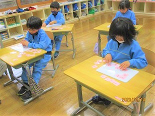 1年生の国語では,文字カードを使って言葉をつくりました。いくつの言葉をつくることができるか,張り切って文字を並べていました。