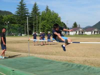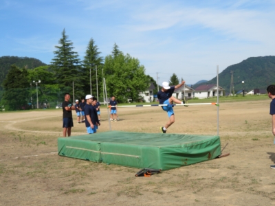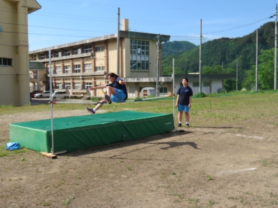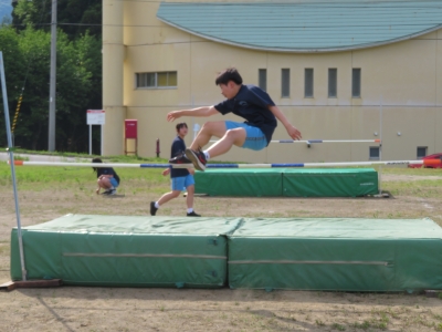 2年生の体育は走高跳。成功するたびに歓声が上がっていました。