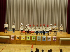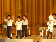 全校合奏「銀河鉄道999」から始まり、1・2年生の体育を中心とした発表、3・4年生のESDの取組発表、5・6年生の八十里越体験物語、そして、最後は全校合唱「手のひらを太陽に」で終演となりました。一人一人の良さが輝き、自分自身も、見ていただいている方々も大満足の行事となりました。
