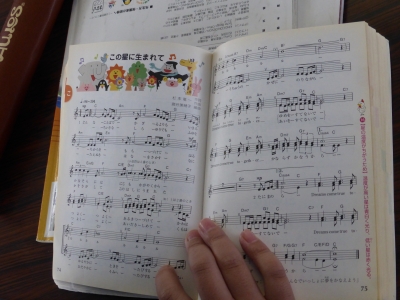 歌っているのは「この星に生まれて」です。ずっと昔から歌いつがれてきている曲です。子どもたちにも人気があります。