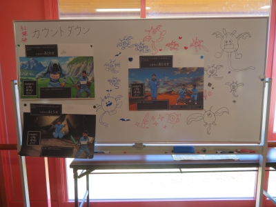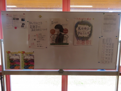 いよいよ今週行われる「紅葉祭」!生徒昇降口には、生徒が作成したカウントダウンボードや紅葉祭に向けた各委員会からのお知らせがホワイトボードに掲示されています。当日は会場係を中心に、会場を装飾します。多くの保護者、地域の方々の参加をお待ちしております。