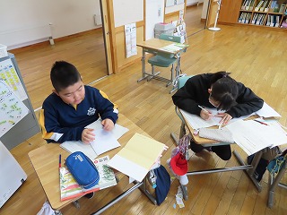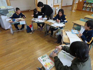 4年生の国語科の様子です。単元のタイトルは「自分だけの詩集をつくろう」です。一人一人テーマを決め、図書館で詩を集め、詩集をつくろうとしているとこです。