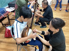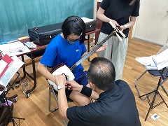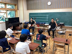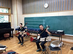 (公財)日本民謡会 津軽三味線奏者の齋藤 様と藤田 様に来校いただき、音楽特別授業を行いました。三味線の歴史などのお話を交えながら、迫力ある演奏を聴かせていただきました。子どもたちは実際に演奏体験もさせていただき、貴重な時間となりました。