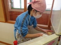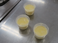 のぞみ学級の授業の様子です。お仕事を行ったことによるおはじきがたまったこともあり、プリンを作りました。