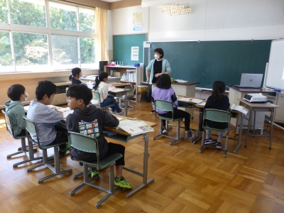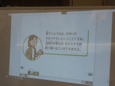 3年生の理科「太陽の光を調べよう」の学習です。温度あてクイズをして予想を聞き合っています。