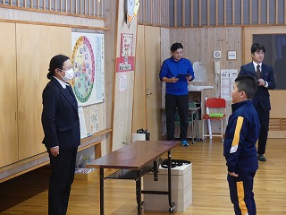 この獅子頭は、本校でESDとして取り組んでいる、伝統芸能継承「梁取神楽」に使用させていただきます。伝統芸能継承活動が、地域づくりに貢献していると認められての贈呈だと捉えています。大切に使用させていただきます。