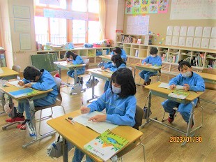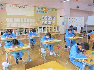 3年生の算数では,ちょっと難しい計算問題に挑戦。計算ミスに気を付けながら,慎重に解いていました。