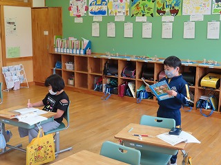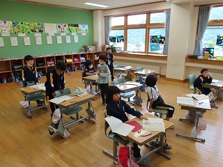 続いては、2年生の国語科「うれしいことば」です。言われたらうれしいことを考え、伝え合っているところです。