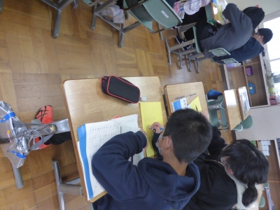 6年生は「座右の銘」について冊子を作っています。作文については、2学期末に完成しているため、今日は表紙づくりです。各児童が選んだ座右の銘は、その理由とともに読むと児童の思いが伝わってきます。ご家庭に持ち帰った際には、ぜひ読後の感想を話してあげてください。