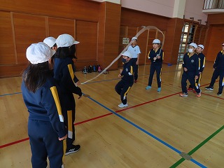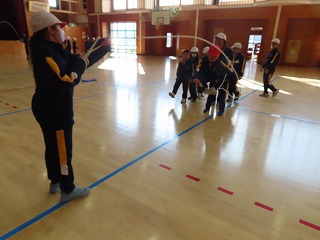 体力向上と運動の日常化を目的にした、ぐんぐんタイムを行いました。今回の運動は「長なわとび」です。縦割り班に分かれ、6年生がリーダーとなって行いました。