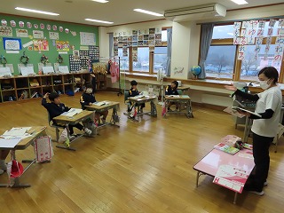 1年生の国語科「じどう車くらべ」の様子です。教科書を読んで、出てきた自動車や学習の進め方を確かめあっているところです。
