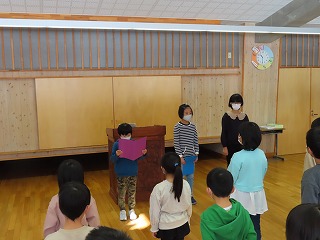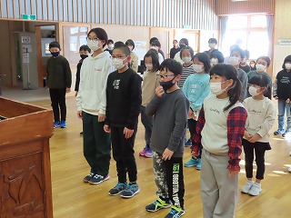 まず、1・3・5年の代表児童が、2学期を振り返りとこれからのめあてについて発表しました。