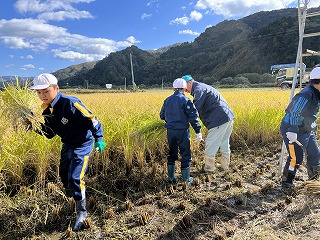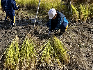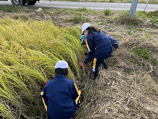 5・6年生の児童が、梁取地区の田んぼで稲刈り体験を行いました。6年生は、今年で2回目になります。さすがに慣れた様子でした。