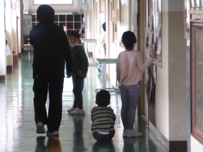 二時間目の休み時間です。子どもたちはそれぞれの場所で遊んでいました。校庭ではブランコ乗りや昆虫採集、砂場遊び、体育館ではバスケットボール、廊下ではこども新聞を読んでいました。気持ちよい秋晴れが続いています。
