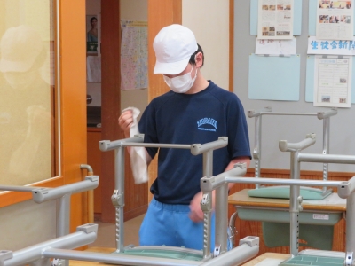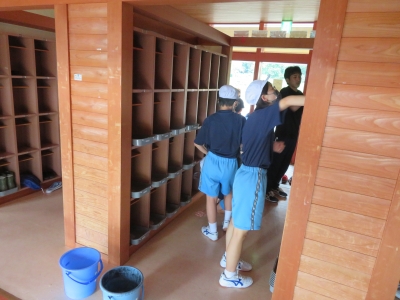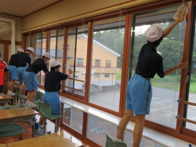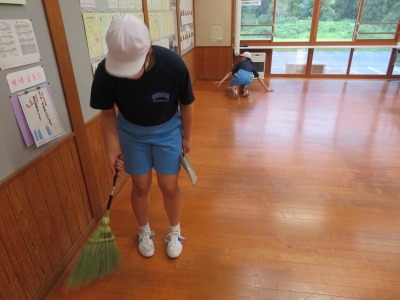 1学期お世話になった校舎を全校生できれいに掃除しました。普段の清掃で手が行き届かない箇所まで協力して掃除している様子が見られました。2学期からも気持ちよく、授業に臨めそうです。