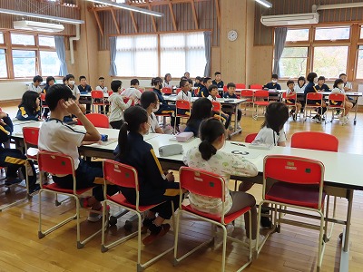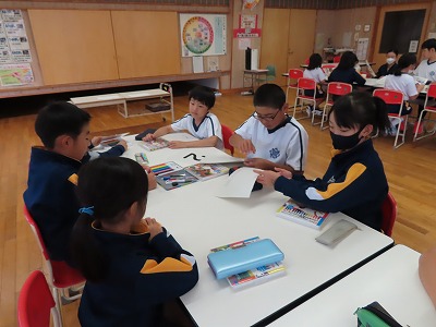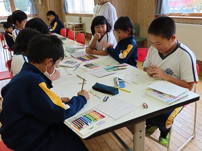 縦割り班で協力しながら,一人ひとりメッセージを書いたり絵を描いたりしていました。自分の力を地域に「役立てる」力ですね!喜んでもらえるかな!?