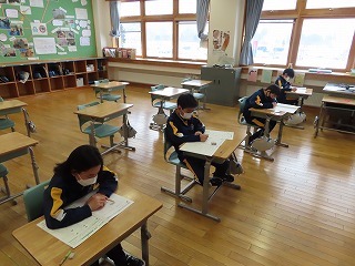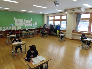 学力テストは、2日目です。本日は、算数と理科(理科は3年生以上)の検査を行っています。子どもたちは、自分の学力を確かめるために真剣に取り組んでいます。