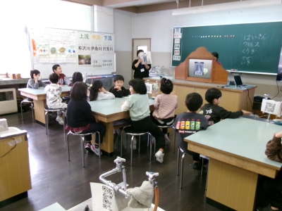 本日、放射線環境影響研究所と放射線リスクコミュニケーション相談員支援センターから講師をお招きし、全学級で放射線について学びました。