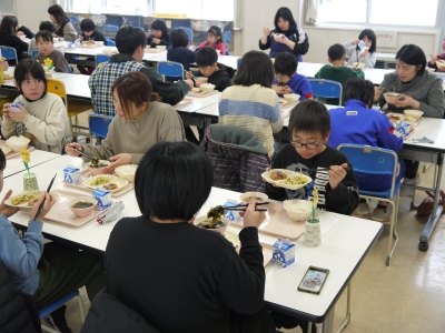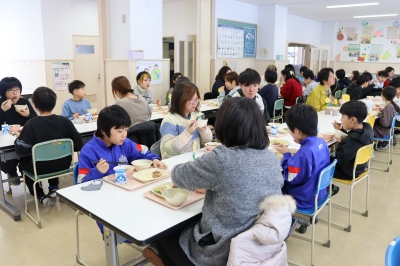 2月2日、1日フリー参観および4・5年保護者親子給食を行いました。